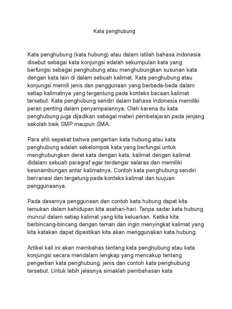 Salah satu di antaranya adalah seri penyuluhan bahasa indonesia: Yang mana kata penghubung adalah sebuah kata yang berguna untuk menghubungkan. Contoh penerapannya bisa kamu lihat pada beberapa kalimat di bawah ini Konjunktion (kata penghubung) sesuai dengan namanya adalah berfungsi untuk menghubungkan. Predikat kalimat tidak didahului oleh kata yang.
